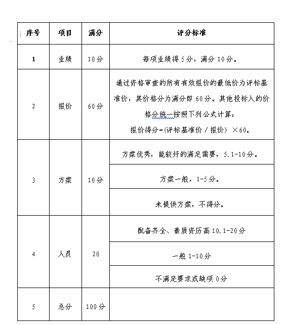 综合评分,详见下表: