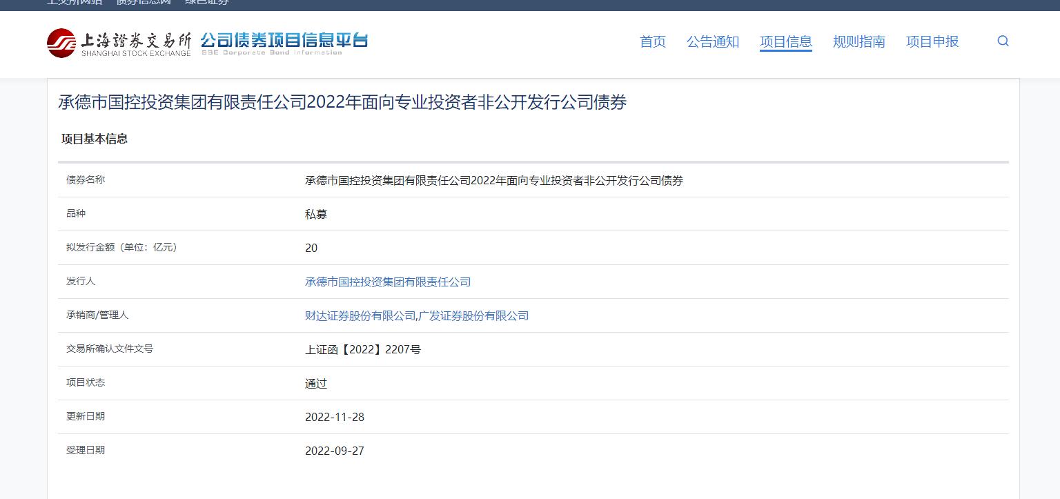 11月29日,集团公司收到上交所《关于对乐投web版登录入口非公司发行公司债券挂牌转让无异议的函》,同意市乐投web版登录入口非公开发行20亿元公司债券,专项用于偿还“20承控01”公司债券等到期债务。